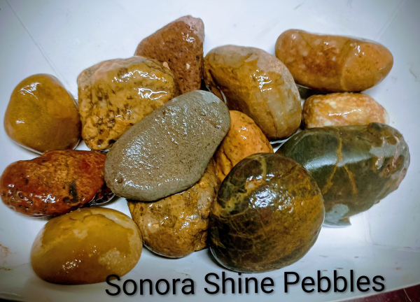 New Woodinville Boutique landscaping materials. Sonora Shine pebbles are irregular, rounded, textured landscapng stones. Rich earthy colors of golden hues, carmels, and black. Known for rich amber coloring as an accent alongside BARKROCKSOIL landscaping material front front entry way in high end homes and resturaunts.